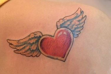 我们拥有一个心天使翅膀纹身寓意着和平幸福,爱情甜蜜。