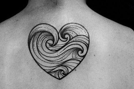 由波浪线条组成的爱心纹身,象征内心波澜起伏,但依然对爱情抱有期待。