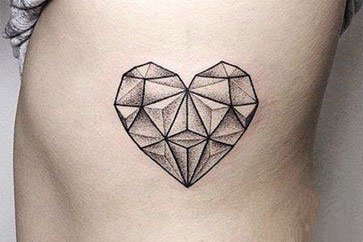 心形钻石纹身曲线优美动人,富有流畅感,是浪漫爱情的象征。
