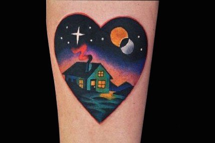 夜空爱心纹身,象征对家庭幸福美满的美好祝福。