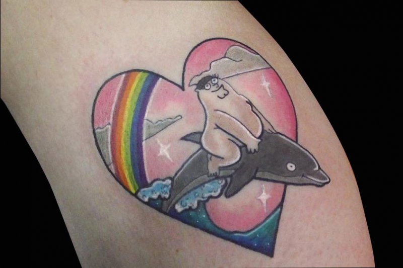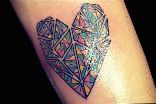 彩色碎片爱心纹身,艳丽夺目,富有艺术感。