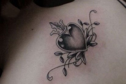 背部皇冠爱心纹身,寓意对爱情的尊重和崇尚。