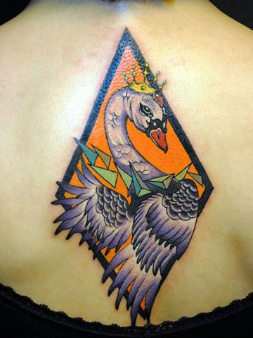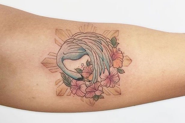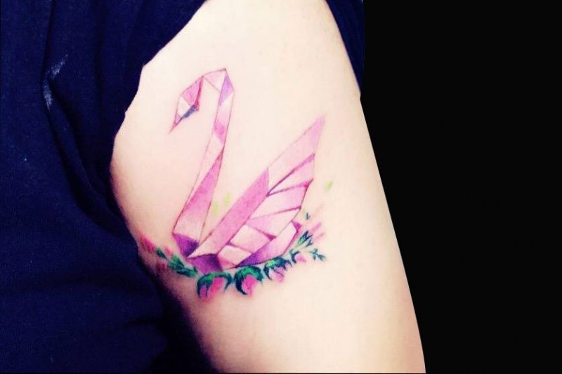 几何菱形天鹅纹身图案,搭配粉红色的色调,更能展现天鹅柔美的身姿和魅力。