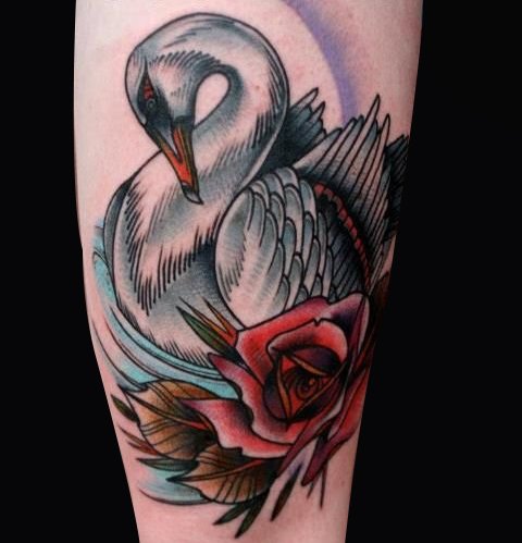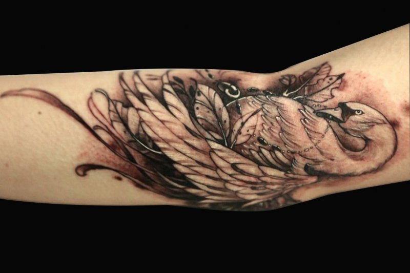 手臂上一款精美的天鹅纹身,简单优雅,把天鹅的曲线美展现得淋漓尽致。