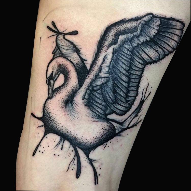 这款天鹅纹身十分写实逼真,诠释天鹅一种自然的美感,高贵、优雅。