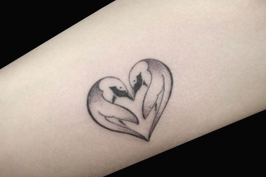 这款心型天鹅纹身图案,传达一种爱情忠贞不渝的精神。