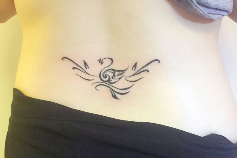腰部一款唯美的天鹅纹身,小巧可爱、还增添性感。