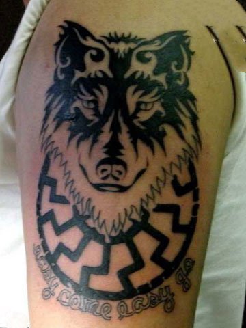 原始风格和狼图腾纹身,纹在手臂上,很有首领的风范!