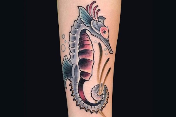 因为海马可以在生产之后马上受孕,所以有着“百子千孙”的寓意,被很多地方的人当作吉祥的动物。将它纹在身上,代表着自己对孩子的期盼、对美满家庭的渴望。