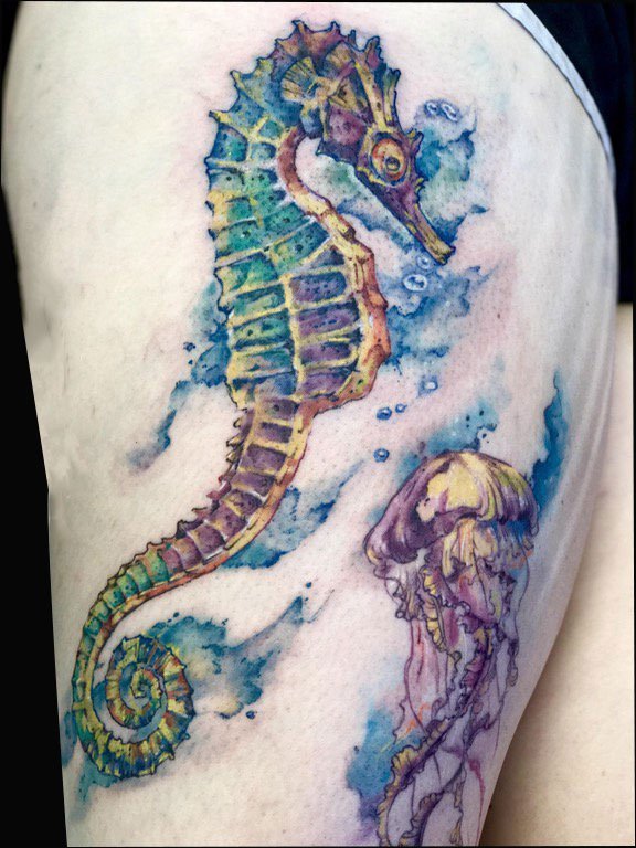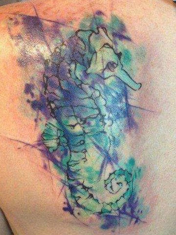 写实派的海马纹身,看起来更有气质更加逼真。