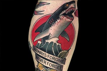 鲨鱼纹身也可以说是自由勇敢的象征,它们自由勇敢的遨游在广阔的海洋,不受任何的的约束,那一种自由是我们一直追寻的。