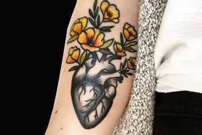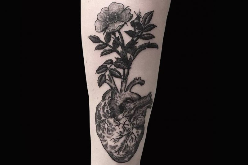 把鲜花与心脏纹身结合在一起,清新范儿十足,图案更具吸引力!