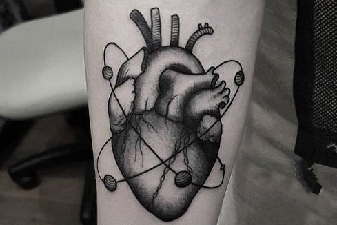 加入行星轨道的心脏纹身是一个生动的尝试,使心脏图案变得立体感十足。