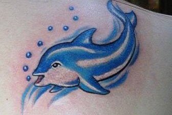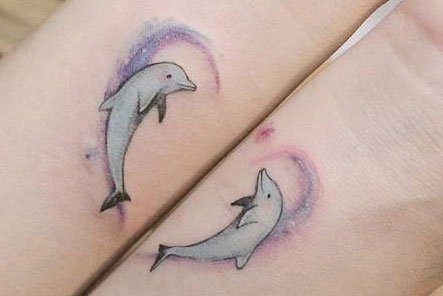 以上两款海豚纹身适合情侣,海豚誉为爱情的守护神,是纯洁爱情的象征。