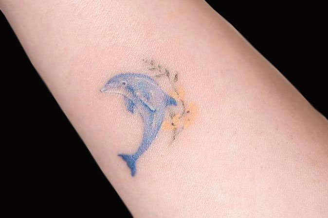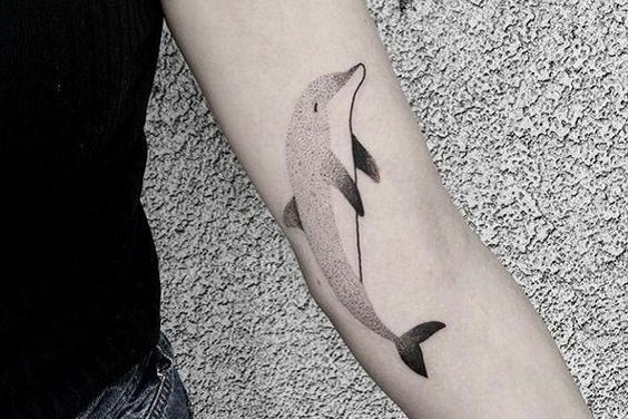 手臂上点刺的海豚纹身图案,既简单,又时尚,男女皆宜!
