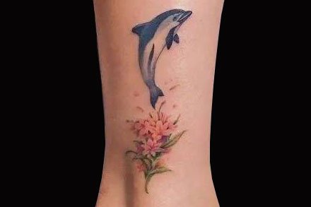 这款彩绘的小海豚纹身图案纹在脚踝,就像海的精灵,充满神秘。