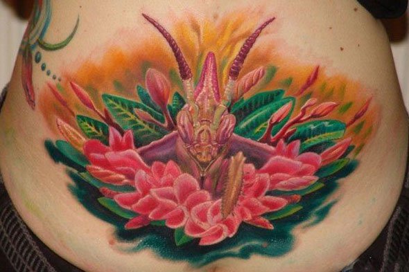 英勇潇洒的螳螂纹身你可能见多了,那么,你见过正在卜卦的螳螂纹身吗?你又是否愿意让它为你卜上一卦?