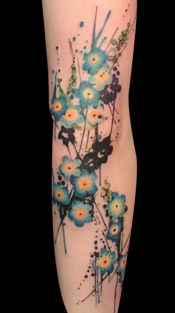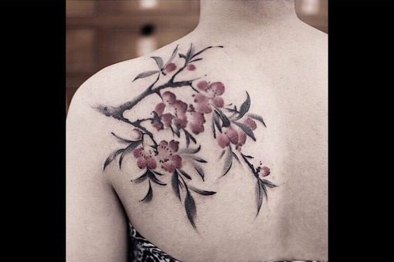 水彩画风格的纹身原来可以如此生动、形象的。而且还把桃花调成了蓝色,推陈出新,创意满满!一直追求前卫另类的你,是不是忍不住要弄一款水彩画的桃花纹身呢?