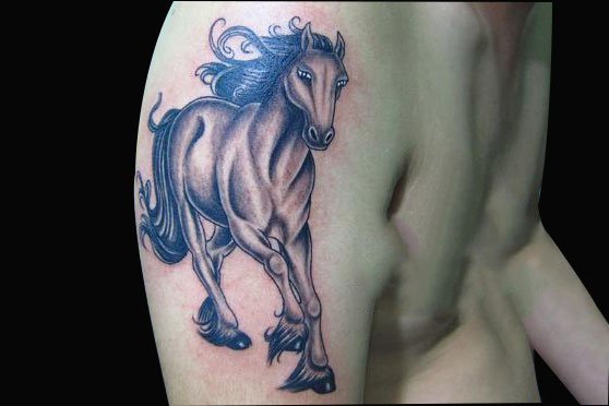 外形威武雄壮的马纹身是很多男性纹身的首选。英姿勃勃,潇洒而帅气的英姿正好合适来张扬自我。