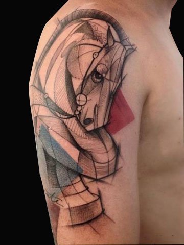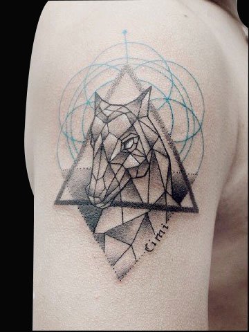 堆砌的木马纹身,结合几何图形,立体感很强!