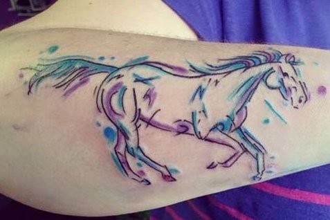 彩色线条勾勒的马纹身图案也很威风凛凛,纹在手臂上最合适不过了。