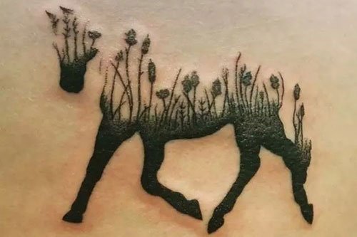 如果想简单又有点创意的,这款黑色马纹身也是不错的选择。