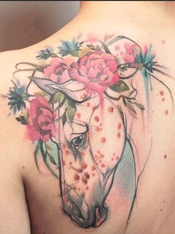 柔和的完美的水彩花和马纹身图案,能恰到好处地展现出女性的古典美!