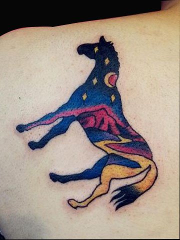 喜欢马而又想有点不一样的,这款马的轮廓结合星空作背景的纹身可以满足你要求。
