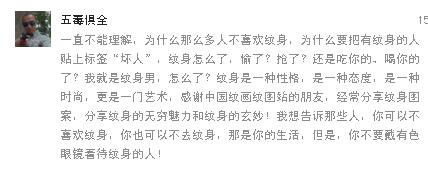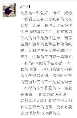 大家都能看到他们都是怎么看待纹身的,真的不是只有小编一个人在说纹身很好,小编也不希望在有些人眼里看来只有小编一个人在倡导纹身,其实,大家都在用自己的方式,让更多的人了解纹身,慢慢的接受纹身,喜欢纹身。