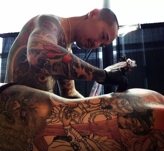日本纹身师黄炎,原名岩崎成格,是当代国际上最著名的新传统日式纹身师,1970年出生于日本广岛,1995年开始自学纹身,2000年设立工作室,2001年开始参加Paul Buse保罗先生主办的麻州城大赛之类的海外比赛,为了学习更高层次的纹身技术,于2002年跟学瑞士的Filip Leu菲利普先生学习3个月的纹身修行。