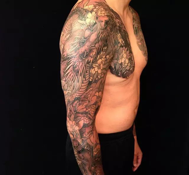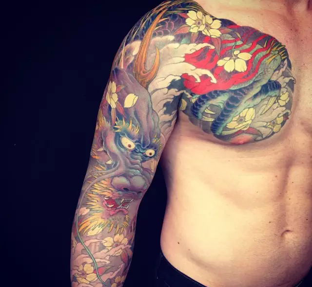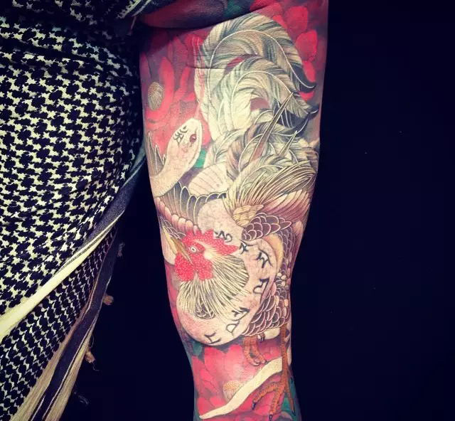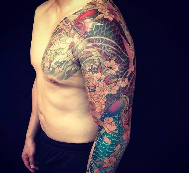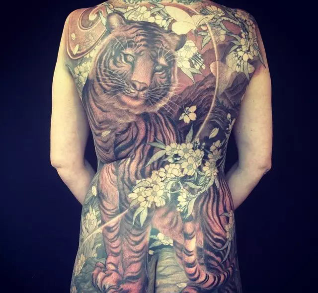 岩崎成格的日式纹身作品,每一寸都是精品,都是极品,流畅的线条,匀称的雾,多样式的图稿,炫眼的彩色,被业内称之为榜样,被爱好者称之为奇迹。 在岩崎的日式纹身作品里可以看到很多浮世绘大师的风格,例如伊藤若冲,同时也有西方美术的写实和空间感,可谓是古今中外结合的艺术品!