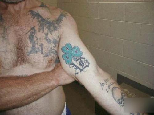 这个监狱帮有许多代表刺青从单纯AB两字母到纳粹党十字记号一直到SS闪电符号都是。