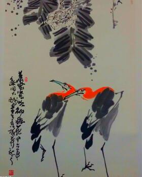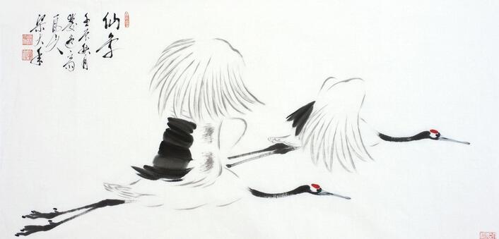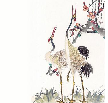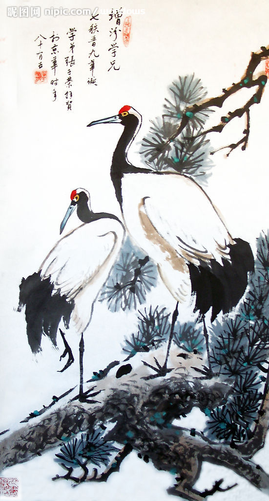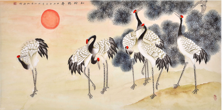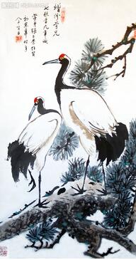 仙鹤常与松树柏树搭配,有志向高远,万古长青,长寿的寓意。