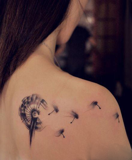 纹身图案近来深受广大纹身爱好者喜爱,特别是正在被吹散的蒲公英