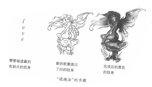 纹身图案的修改来调整,以达到与失败纹身相适应的效果。尽量满足客人的喜好,因为一个失败的纹身在修改成一个新的纹身后,往往比原来要大很多,所以尽量不要让顾客再后悔。