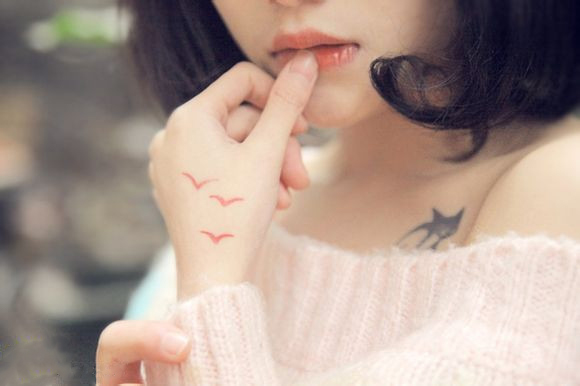 纹身图案寓意着在现实无奈的社会做最简单的自己。海鸥有着海上航行安全的“预报员”的誉称,指明前方的道路。海鸥