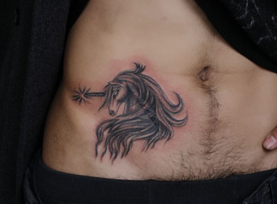 纹身图案上纹身遮盖时,不要用太多的黑色(因为这里的颜色已经很饱合,在这个地方上色就必须保持一个最小的限度),用正好能把旧的