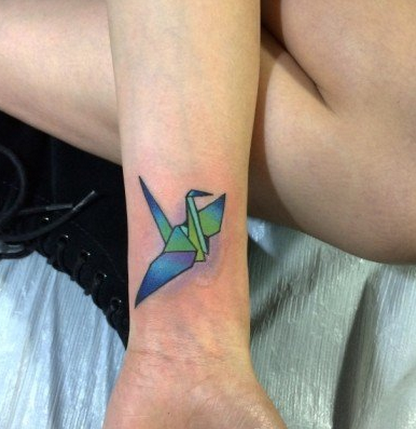 女生在闲暇时光喜欢折千纸鹤挂起来,在纹身当中,它也是一种好看的