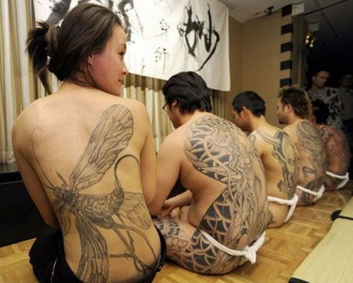 日本社会发展的不同时期对纹身艺术的态度是不同的。日本曾接受纹身艺术的行为,但也一度宣布其非法。后来,纹身艺术被视为与“活受罪”相同的处罚形式,专门用来处罚被流放的罪犯,是耻辱的标志。再后来,慢慢扩展到劳工间用以显示兄弟感情的帮派标志,情人间海誓山盟的秘密见证,或凡人受到佛教庇护的护身符等等。这些发展都经历了一段历史时期。