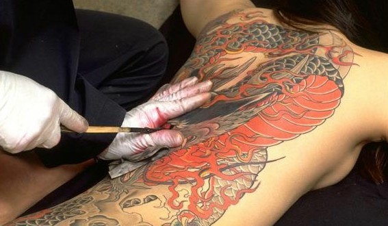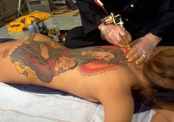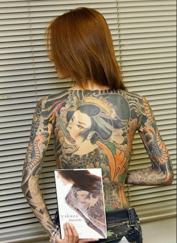 日本纹身又被日本人称为“入墨”。他们在人体皮肤上刺浮世绘的作品,是一种精美的民间工艺。日本纹身最典型的特点就是覆盖全身的