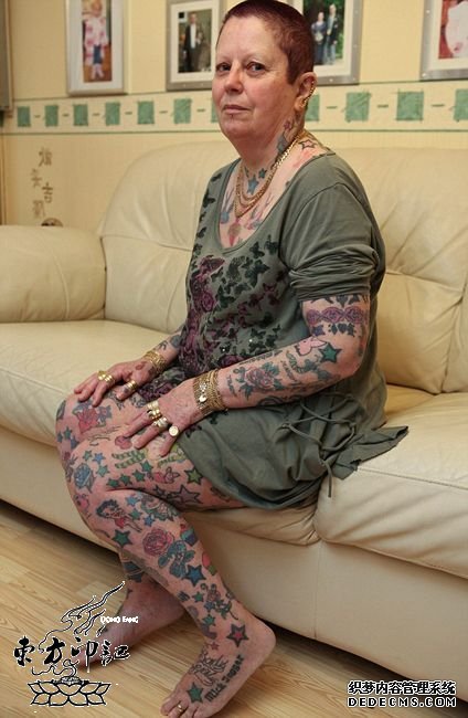 纹身,在很多国人看来依然是难以接受的一种皮上艺术,这样的观点或许是因为受到我国源远流长的传统文化的影响,所以,国内的纹身者,大多还局限在年轻群体中,若有老人前去纹身,应该会让纹身师吓一大跳吧,然而,这样的纹身状况在国外却是恰恰相反,纹身不仅是年轻人的专利,而且还是不少老年人的新宠。最近,就有国外媒体报道,英国有一位年已花甲的老妇,在身上纹了近300处纹身图案,这样的纹身是不是堪称壮举呢?