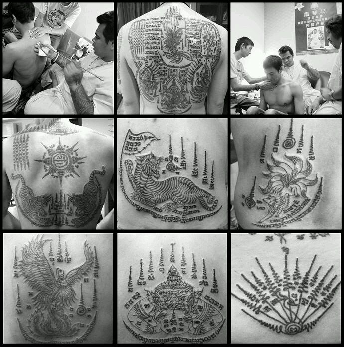 梵文的经文,甚至只纹一个“纳”符字,就可以得到护身的功能。约百余年前,泰国才逐渐的盛行将泰国神话里的神兽纹在身上,将神兽的形态转化成潜藏的威力,不过这也取决于纹身僧侣或纹身师傅的功力。经过师傅的特定加持后,法力刺符才会生效,据说发生危险时,法力刺符会自动产生防护功能,甚至可以刀枪不入,避险于无形之中。一般不同的法力刺符也有不同的纹身寓意,下边我们了解一下不同法力刺符的寓意及含义是什么: