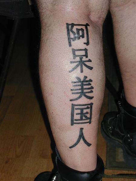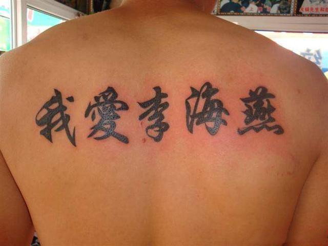 这里指的文字,是不了解其含义的外文和少数民族的经文箴言。许多第一次纹身的年轻朋友,为了标榜自己的个性,会用一些小语种文字来标榜自己的个性,但是自己根本不了解这些文字的真正含义,所以就难免会闹出一些笑话。(就像很多外国人喜欢中文,会纹一些风马牛不相及的汉字)