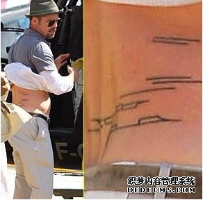 其实这并不是皮特的第一个纹身,他的身上还有安吉丽娜朱莉的生日纹身和诗句纹身,当然还有朱莉随手画的线条后来也做成了纹身,光是看到这里就能感觉到这是一个充满爱的家庭。