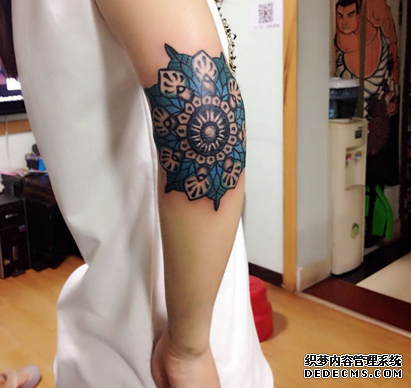 近些年来选择在肘部纹身的人越来越多,不少的人表示不知道这个肘关节适合纹什么?下面纹身为您做个推荐,到底哪些图片比较适合纹在肘部呢? 由于肘部的曲线都是圆形的,所以圆形的纹身图案非常贴合这个身体位置,比如: 梵花: 蜘蛛网: 梵花和蜘蛛网纹身一半都是圆弧形状的,非常的适合肘关节。当然除了这些还有一些非常好的创意,这些图案也很适合纹在肩头: