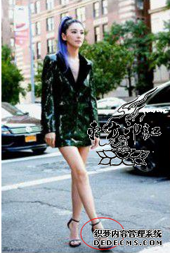 这一套率性西装搭配脚背时尚纹身贴,将时尚诠释的淋漓尽致,2015季纽约时装周张雨绮大获全胜!