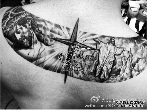 十字架、耶稣、圣母、如此宗教式的纹身图案,可见韩星太阳应该是信仰基督教的吧!