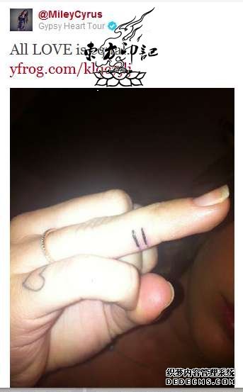 据纹身爱好者透露,同性婚姻合法还是不合法,这一问题,曾是美国社会一个颇有争议的话题,关注此事的人不乏美国的名人明星,例如美国乐坛新一代小天后麦莉-塞勒斯就曾为支持同性婚姻合法化而纹身,在其手指上纹上了一个“=”符号的纹身图案,并将纹身照片上传到推特上,高呼“all love is equal”,而因为这个纹身和推特,麦莉还曾和反对者打了一场口水战,而最终还是民主包容取得了胜利!