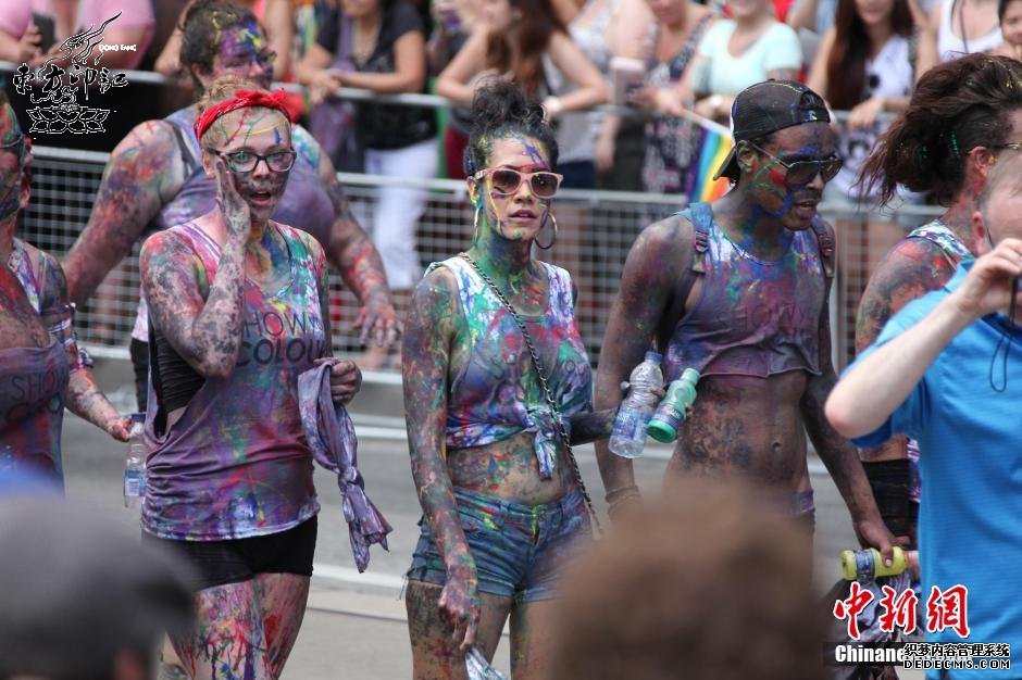 美国是世界上少有的承认同性恋婚姻合法化的国家,2013年6月26日,美国最高法院撤销了联邦同性婚姻的禁令DOMA,而时隔一年,美国的同性恋者再次走上街头,彩绘纹身大游行,庆祝美国同性婚姻合法化一周年。