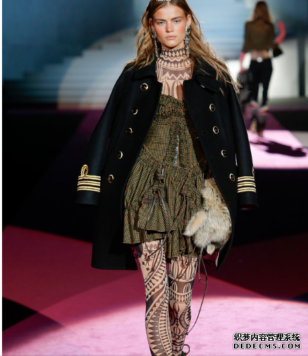 D二次方是加拿大双胞胎兄弟创造的意大利时装品牌,并受到了很多大牌明星的垂青,其中麦当娜便是其中之一。而现在D二次方是以狂野和性感风格闻名于意大利时装界的,其中有着很多不羁和奢华的理念融入。本次的时装发布同样传承了这样一些元素,另外增加了一些纹身的元素进入,更是让服装霸气侧漏!